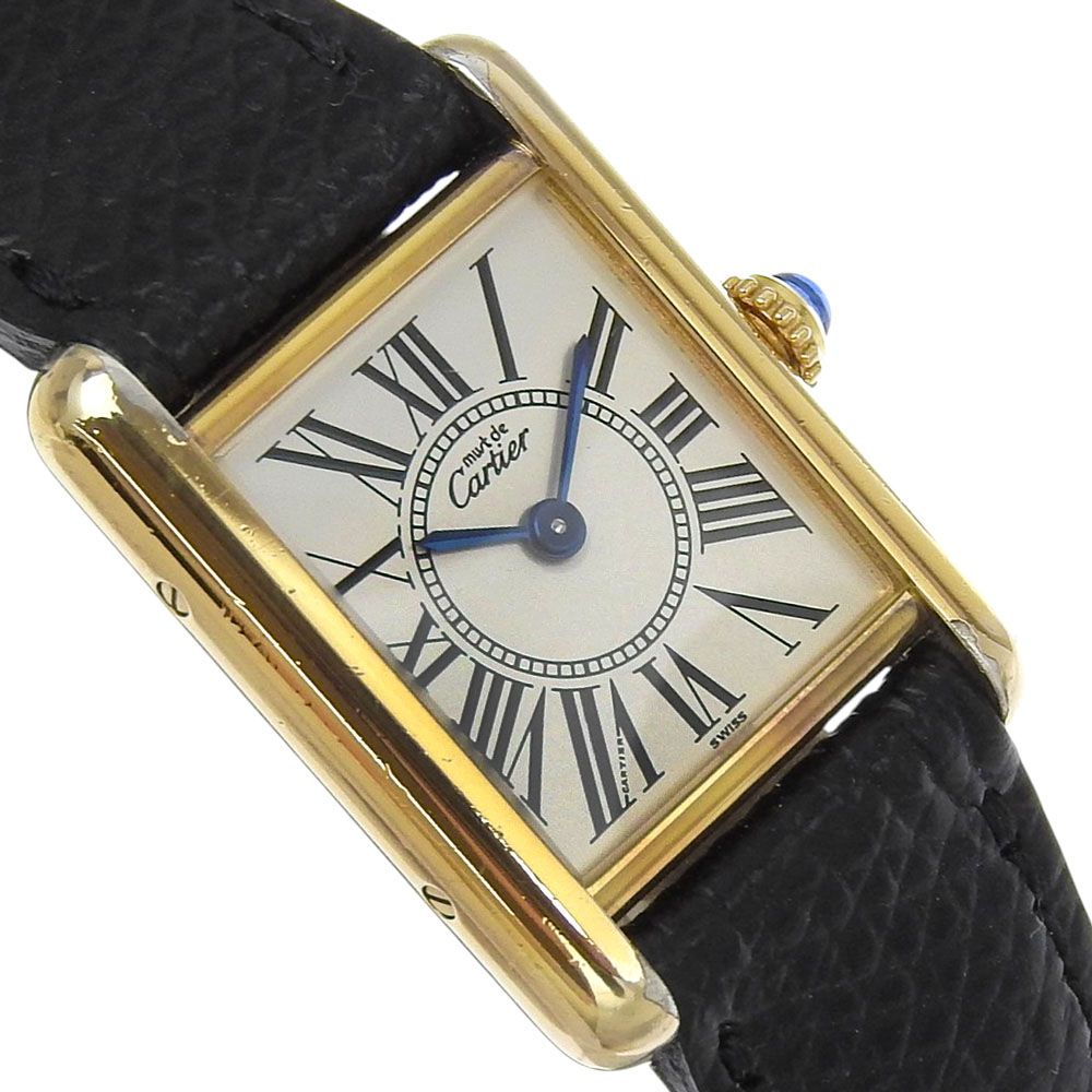 CARTIER カルティエ マストタンクSM ヴェルメイユ cal.057 シルバー925×レザー ゴールド クオーツ アナログ表示 レディース 白文字盤 腕時計