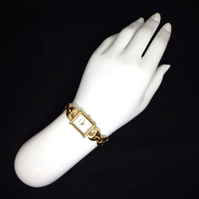 グッチ GUCCI 腕時計 チェンジベルト 1800 L レクタンギュラー ホワイト文字盤 GP クオーツアナログ