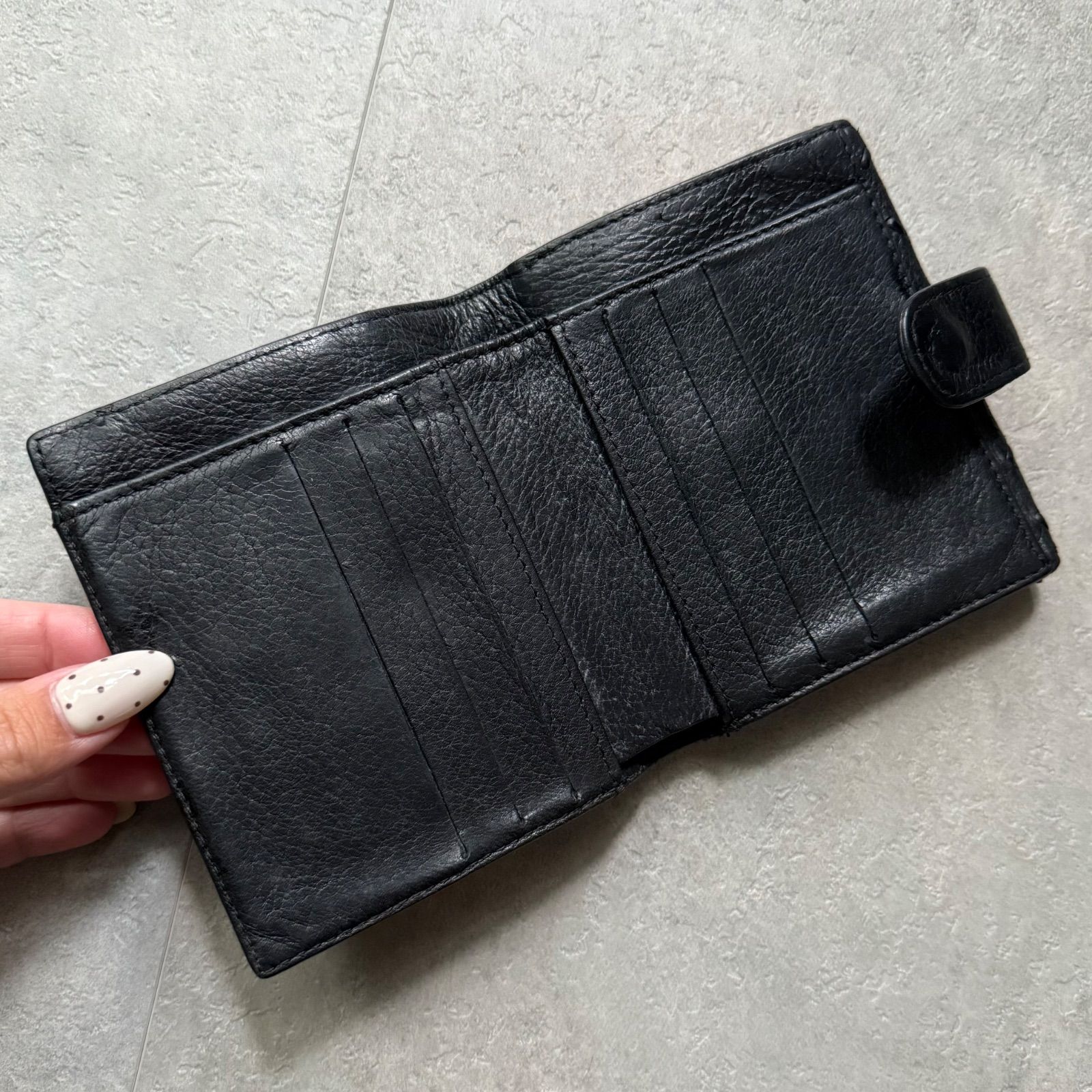 CHANEL シャネル ステッチ ココマーク Wホック 二つ折り財布 レザー ブラック コンパクトウォレット ワイルドステッチ