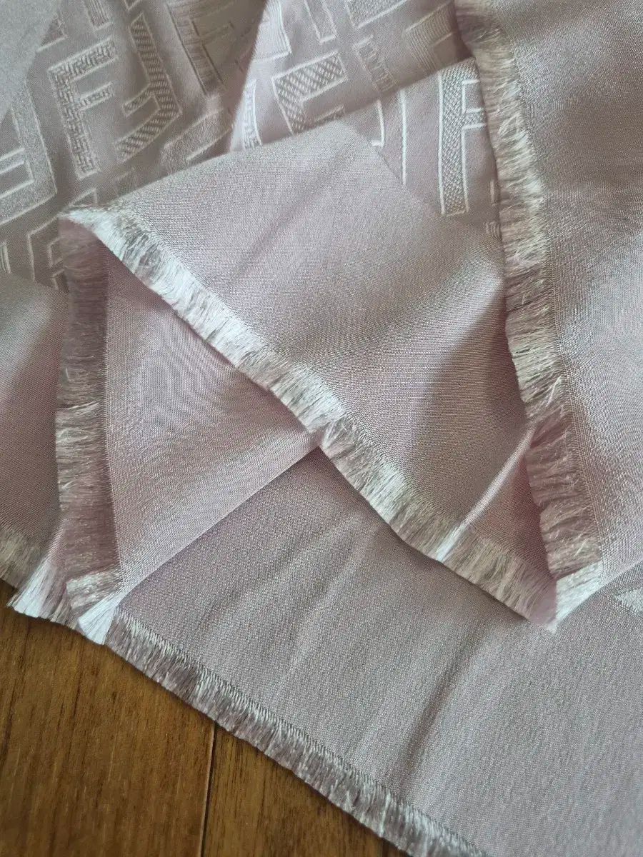 未使用フェンディ FF ロゴシルクカーフ。カラーはピンク。フェンディのロゴは、全体的にさまざまな模様のほのかなピンク色で豪華に装飾されています。シルク素材は柔らかく、スカーフ自体もいいアクセントになっています。