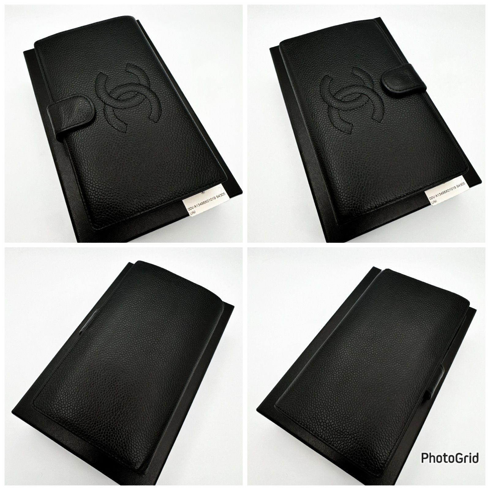 シャネル キャビアスキン がま口 二つ折り 長財布 ブラック