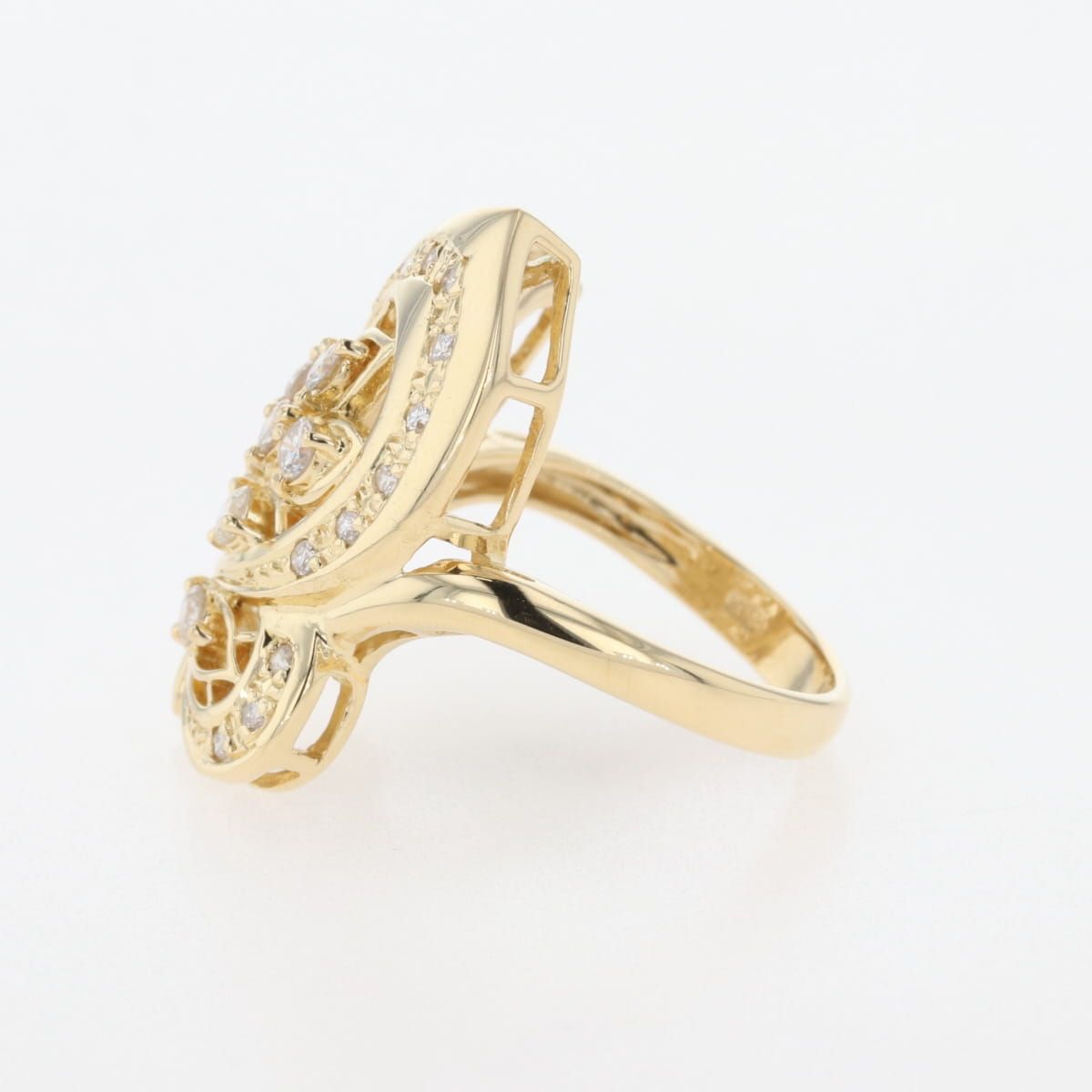 バタフライモチーフ デザインリング YG イエローゴールド 指輪 メレダイヤ 蝶 リング 11号 K 18 ダイヤモンド レディース