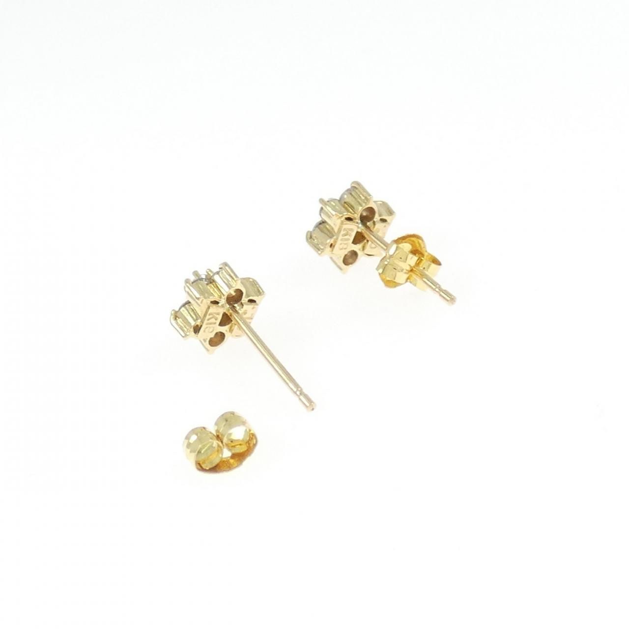 K 18 YG フラワー ダイヤモンド ピアス 0.30 CT