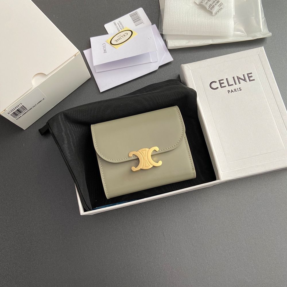 CELINE トリオンフ コンパクト財布 SMALL TRIOMPHE WALLET グレー色 ミニ財布