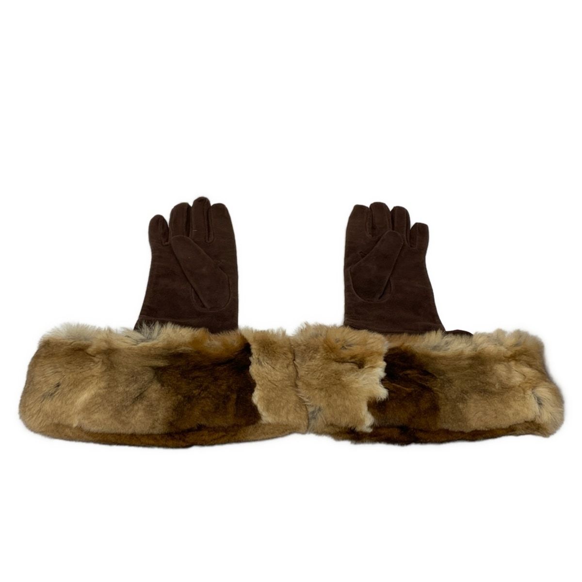 FENDI フェンディ 手袋 レディース - ダークブラウン×ベージュ ファー