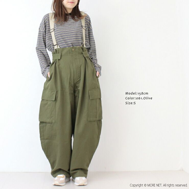 ジョンブル ミリタリーサロペット ワイド カーゴパンツ サスペンダー レディース 2025秋冬