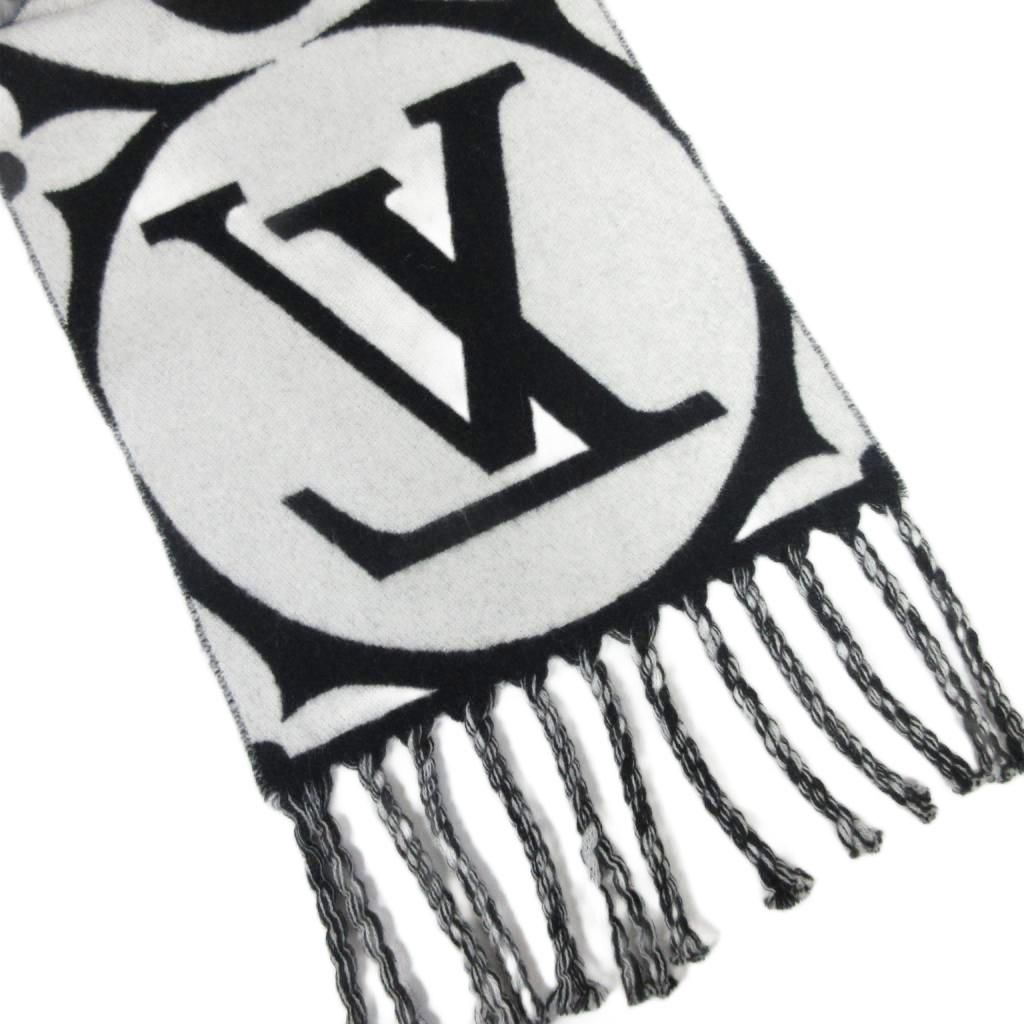 ルイヴィトン LOUIS VUITTON M 79212 フライトモード マフラー LVメダリオン ストール フリンジ S 00 ノワール モノクロ ブラックホワイト MNK 2