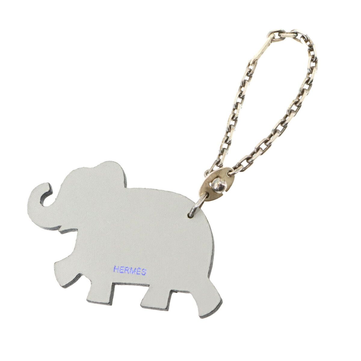 エルメス HERMES アニマル バッグ チャーム キーホルダー エレファント 象 レザー SV 925 パープル グレー シルバー 金具