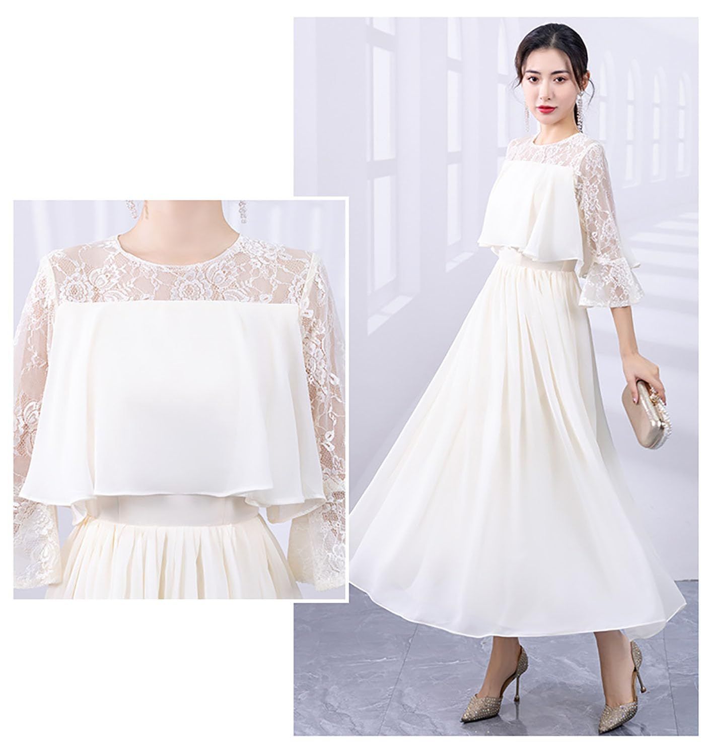 お呼ばれドレス 結婚式 長袖 ワンピース 二次会 フォーマル ミモレ丈 お呼ばれ レース パーティードレス ドレス ホワイト 白 大きいサイズ Hanmall