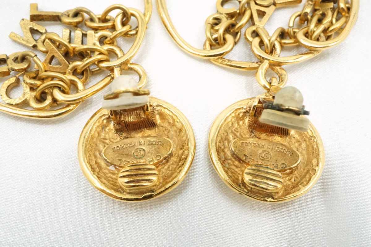 シャネル ヴィンテージ イヤリング ロゴ フープ スイング ラウンド 金 ゴールド CHANEL 3806 j