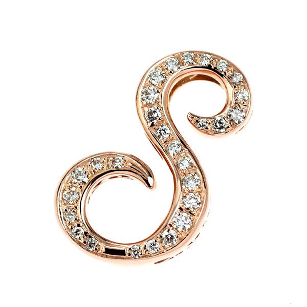 ゆきざき K 18 YG PG ダイヤモンド ペンダントトップ 0.37 ct イニシャルS