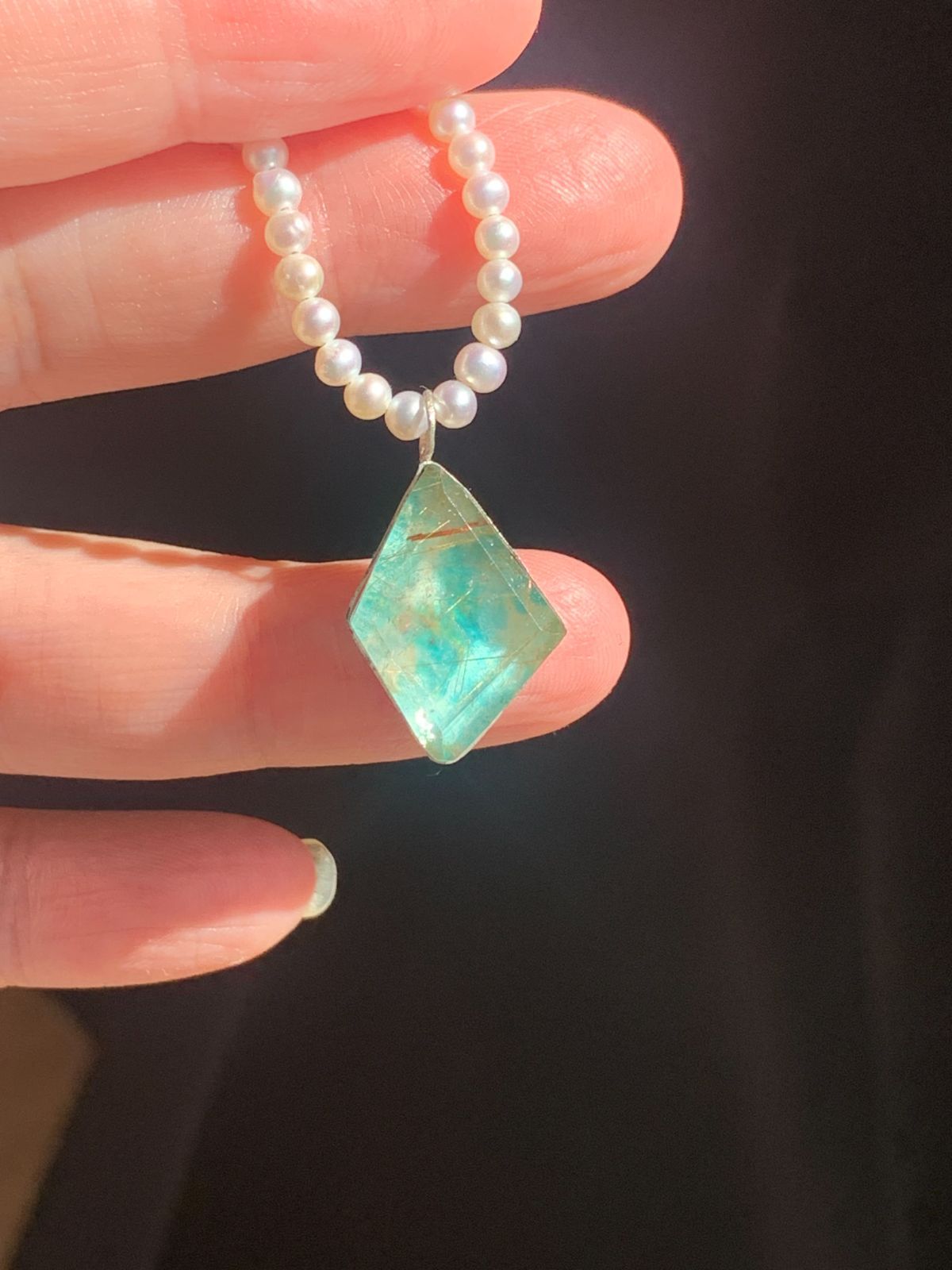 ターコイズ×ルチルクォーツ×クリスタルクォーツ ダブレット ストーン ネックレス 両面ペンダント チャーム SV 925シルバー 1点もの 38