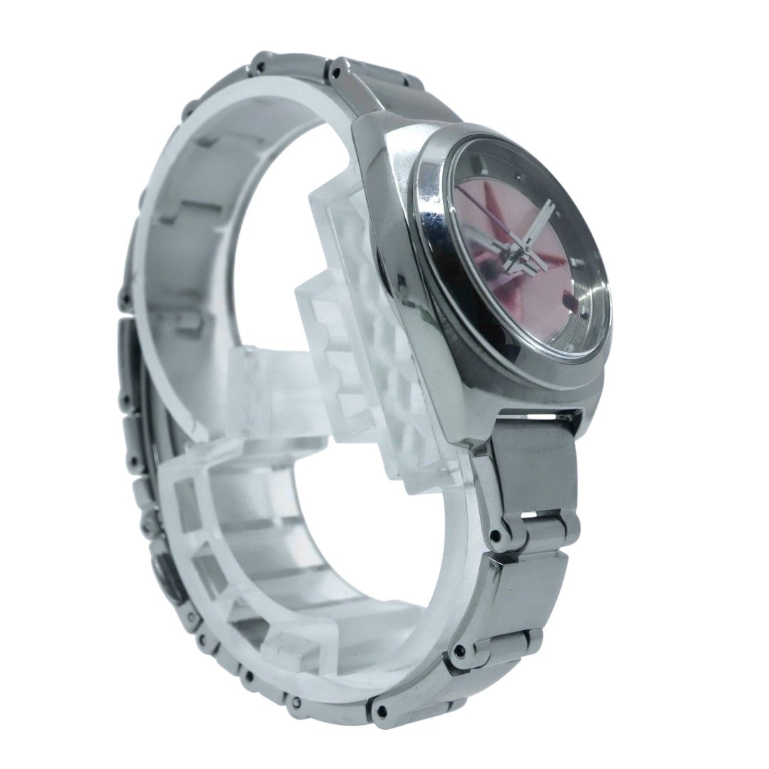 文字盤に立体的なスター(星)モチーフがデザインされた、ポールスミスらしい遊び心あふれる一本。フェミニンなピンクダイヤルが、手元を華やかに彩ります。