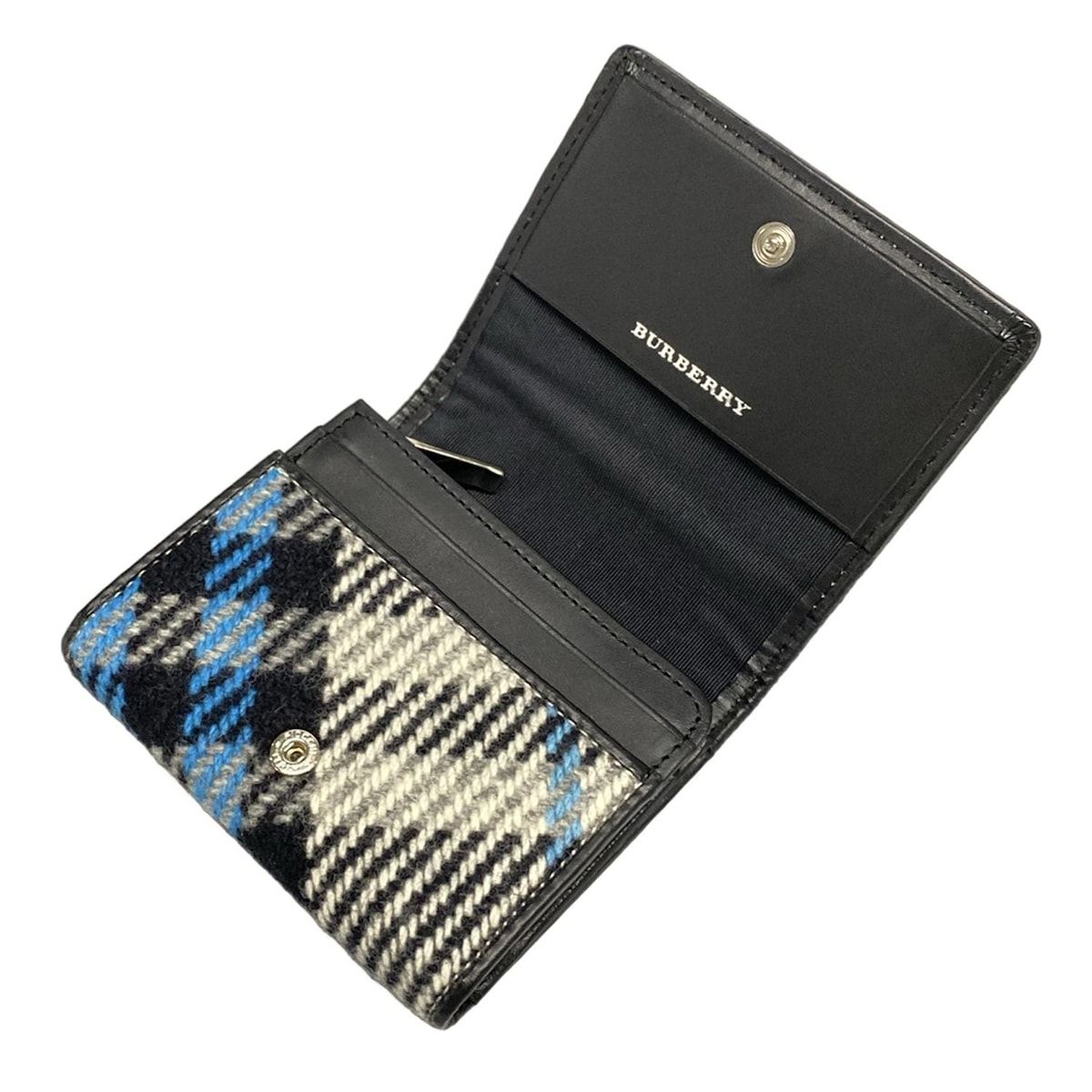BURBERRY バーバリー コインケース 黒×アイボリー×ライトブルー ストライプ チェック柄 ウール レザー