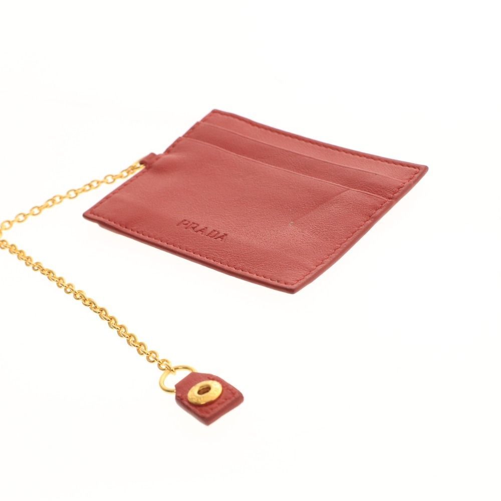 プラダ カードケース パスケース 定期入れ ゴールド金具 チェーン レザー ロゴ メンズ レディース レッド系