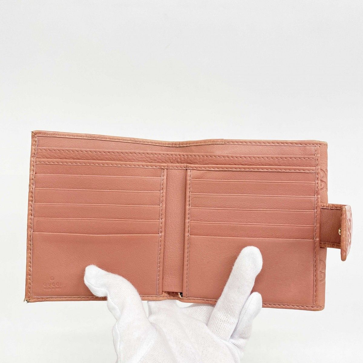5 ic 3523 グッチ 財布 グッチシマ 212105 レザー ピンク ゴールド金具 レディース