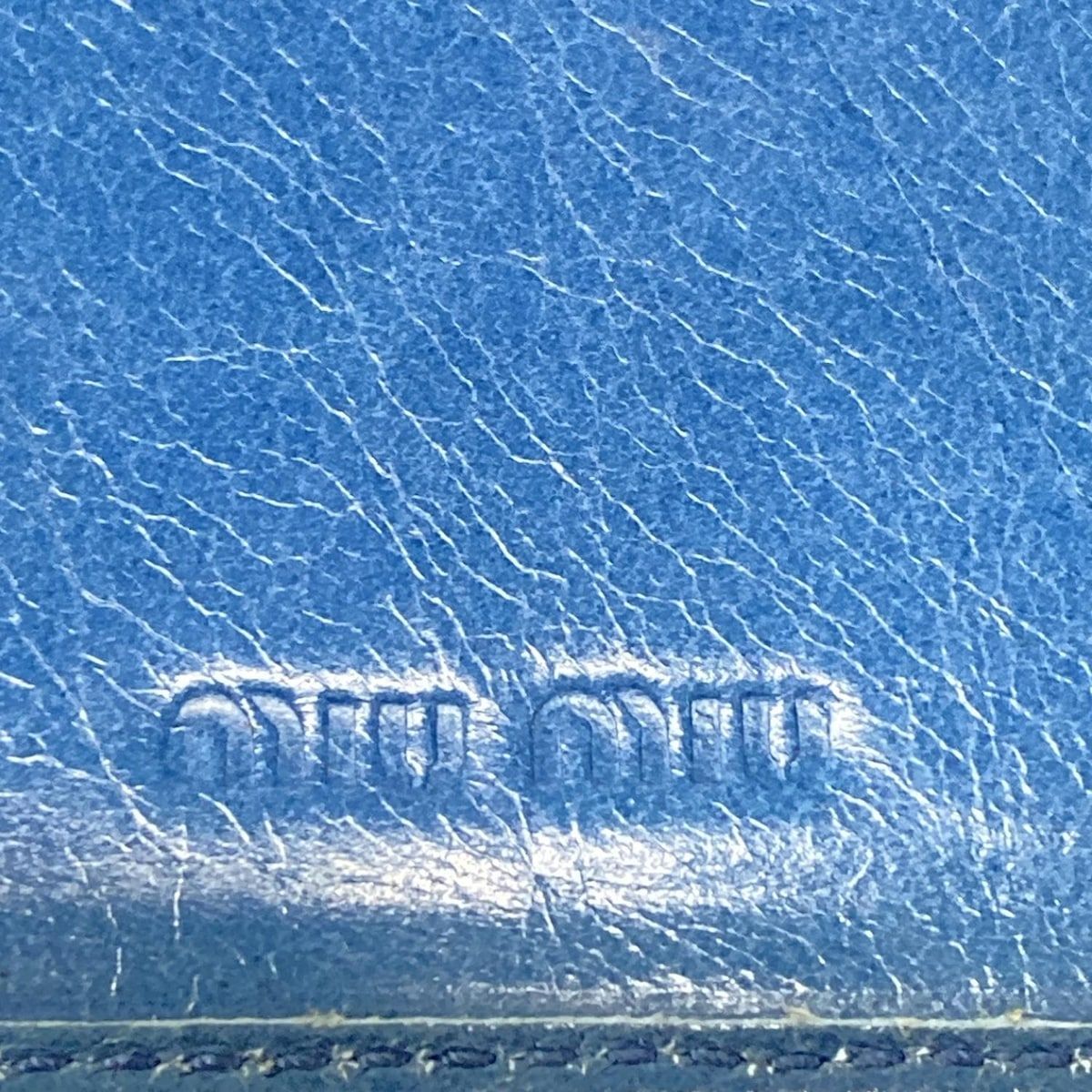 miumiu ミュウミュウ 3つ折り財布 - ブルー リボン 内側ミラー付き レザー