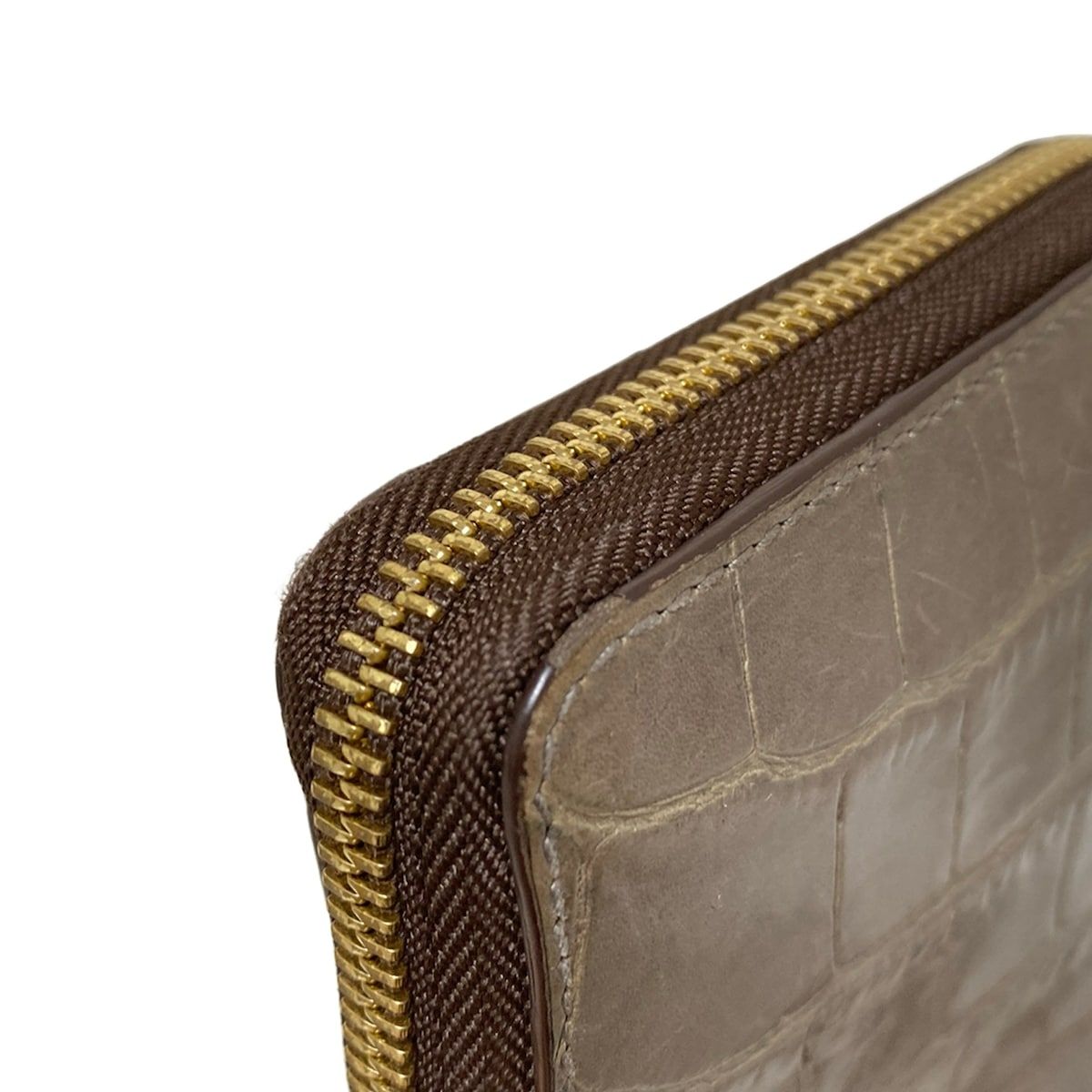J-MDavidson ジェイ-エムデヴィッドソン 長財布 - グレーベージュ クロコダイル型押し加工 ラウンドファスナー レザー