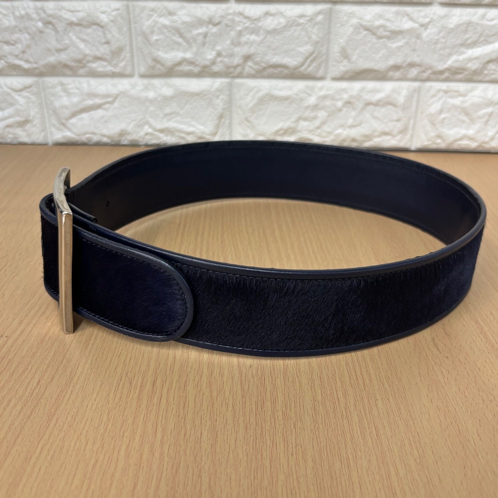 GUCCI グッチ トムフォード期 牛革ハラコベルト バックルロゴ ネイビー