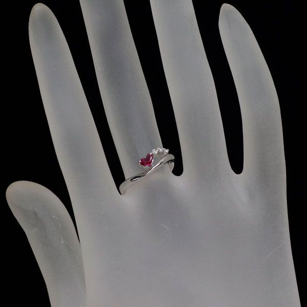 K 18 WG ハートシェイプ ルビー ダイヤモンド リング 0.26 ct D 0.06