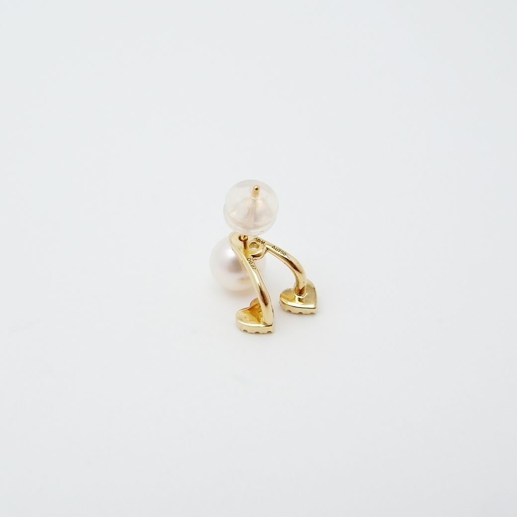 アーカー ハート パヴェ デュオ ピアス シングルピアス アコヤパール ダイヤモンド 6.3 mm 0.07 ct K 18 YG SAランク