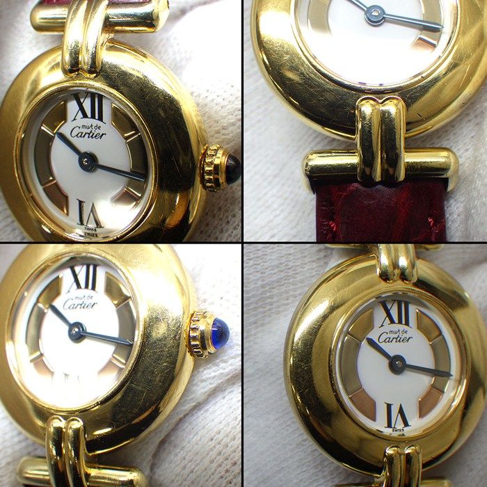 カルティエ Cartier 腕時計 マスト コリゼ 590002 W1006654 ヴェルメイユ スリーカラー文字盤 GP SV925 レッド アリゲーター レザーベルト クオーツアナログ