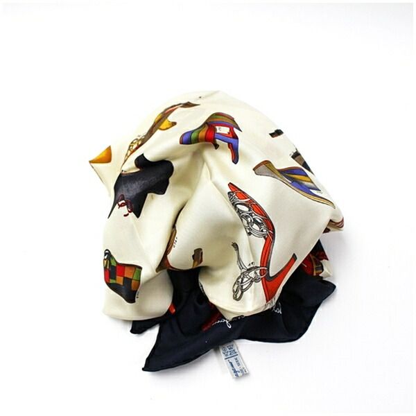 サルバトーレフェラガモ シルク スカーフ ホワイト ネイビー パンプス柄