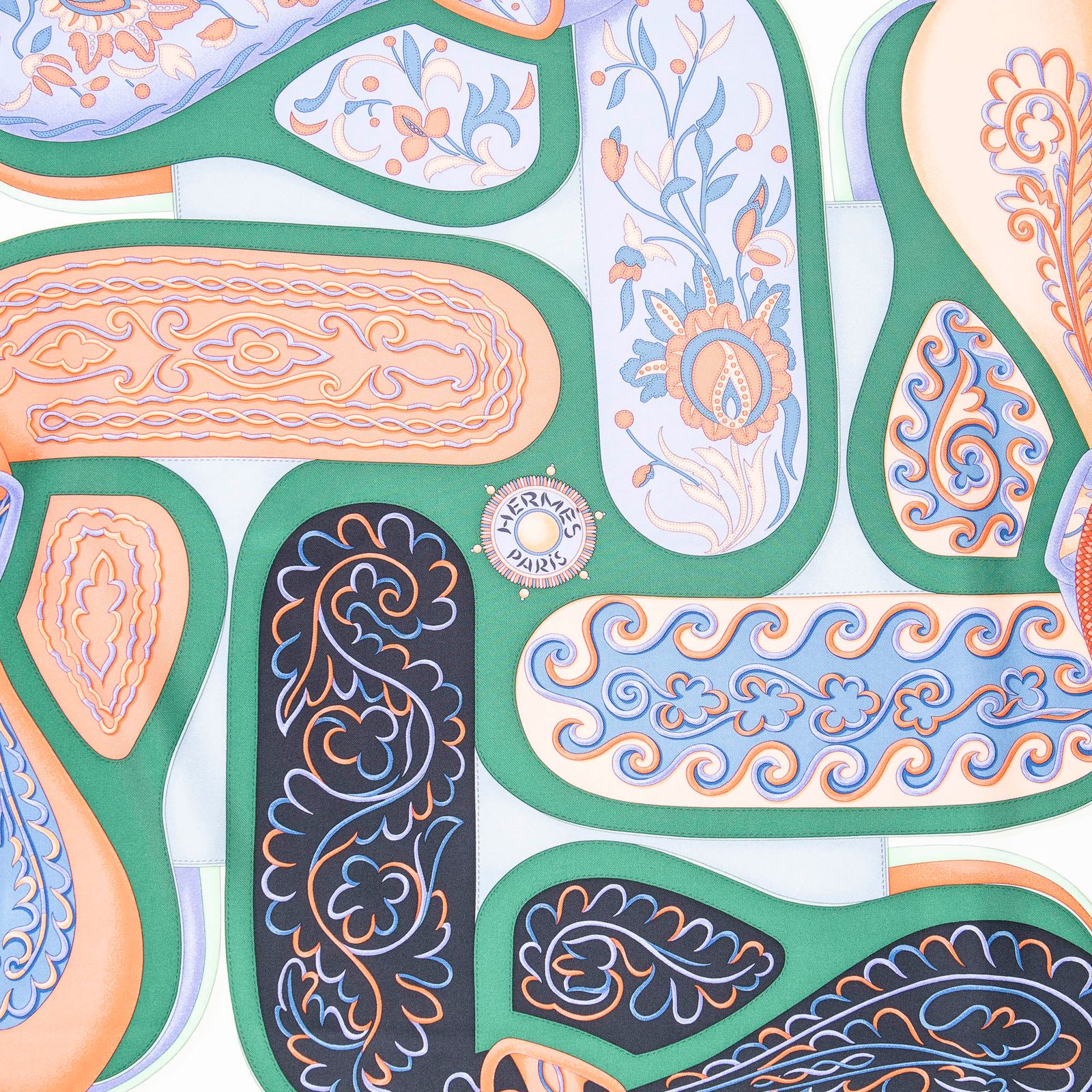 HERMES エルメススカーフ青 紫 緑 ツイルシルクA