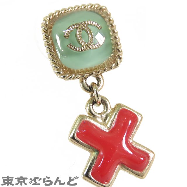 シャネル CHANEL ココマーク クロス ピアス ゴールドxグリーンxレッド メタル レジン 17 S GP イヤリング レディース