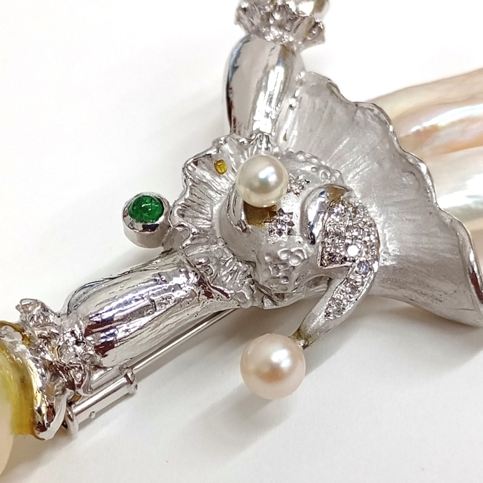 K 18 WG メレD 0.1 ct エメラルド0.11 パールct不明 ブローチ トップ 24.47 g バロックパール デザイナーズ ジュエリー JA-25057