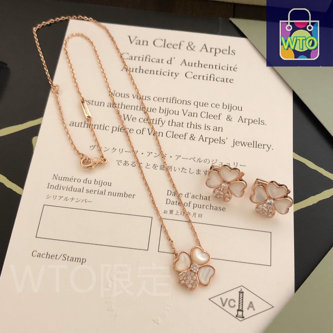 Van Cleef - Arpels VCA ヴァンクリーフアンドアーペル シングルフラワー イヤリング 18 K ゴールド ホワイト マザーオブパール 四つ葉のクローバー ネックレス| | -WTO輸入1