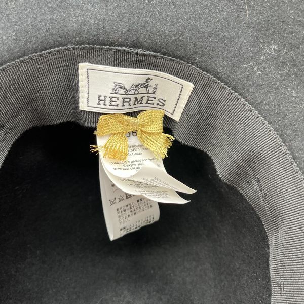 エルメス HERMES 帽子 Francoise フランソワーズ BRIDES de GALA ウールハット つば広 黒 毛100% 絹 綿 56 レディース 5 E 041