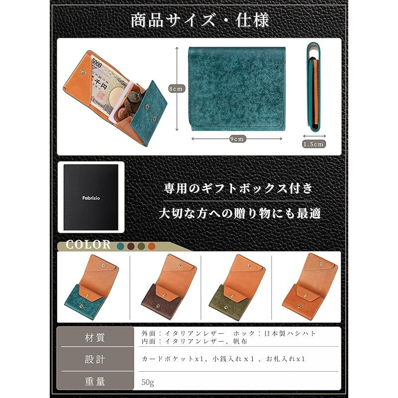 ファブリツィオ 財布 メンズ レディース 2つ折り 小銭入れ ミニ財布 小さい 薄い コンパクト 柔らかい 使いやすい イタリアン レザー 一流の革職人が作る 本革 タバコ 1
