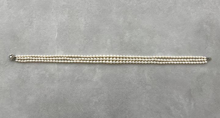 当店で買い付けていた淡水パールの3連チョーカーネックレスです。