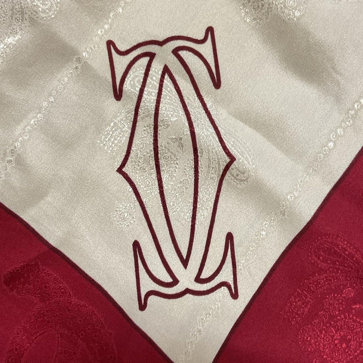 Cartier カルティエ スカーフ - レッド×アイボリー シルク