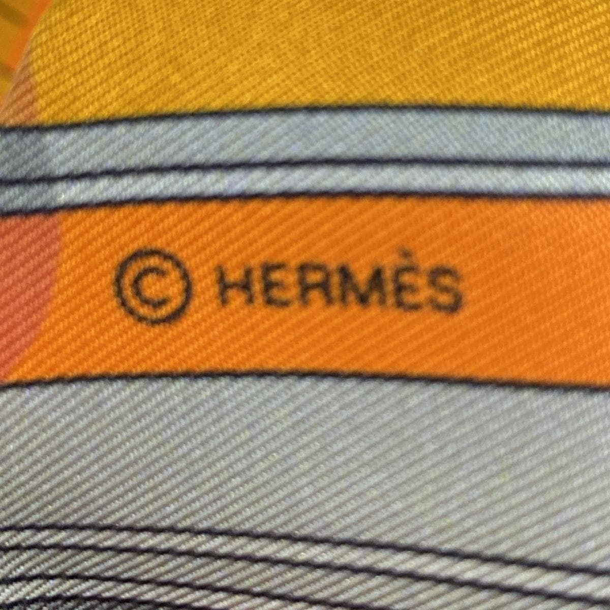 HERMES エルメス スカーフ マキシツイリーカット オレンジ×マルチ リボンスカーフ