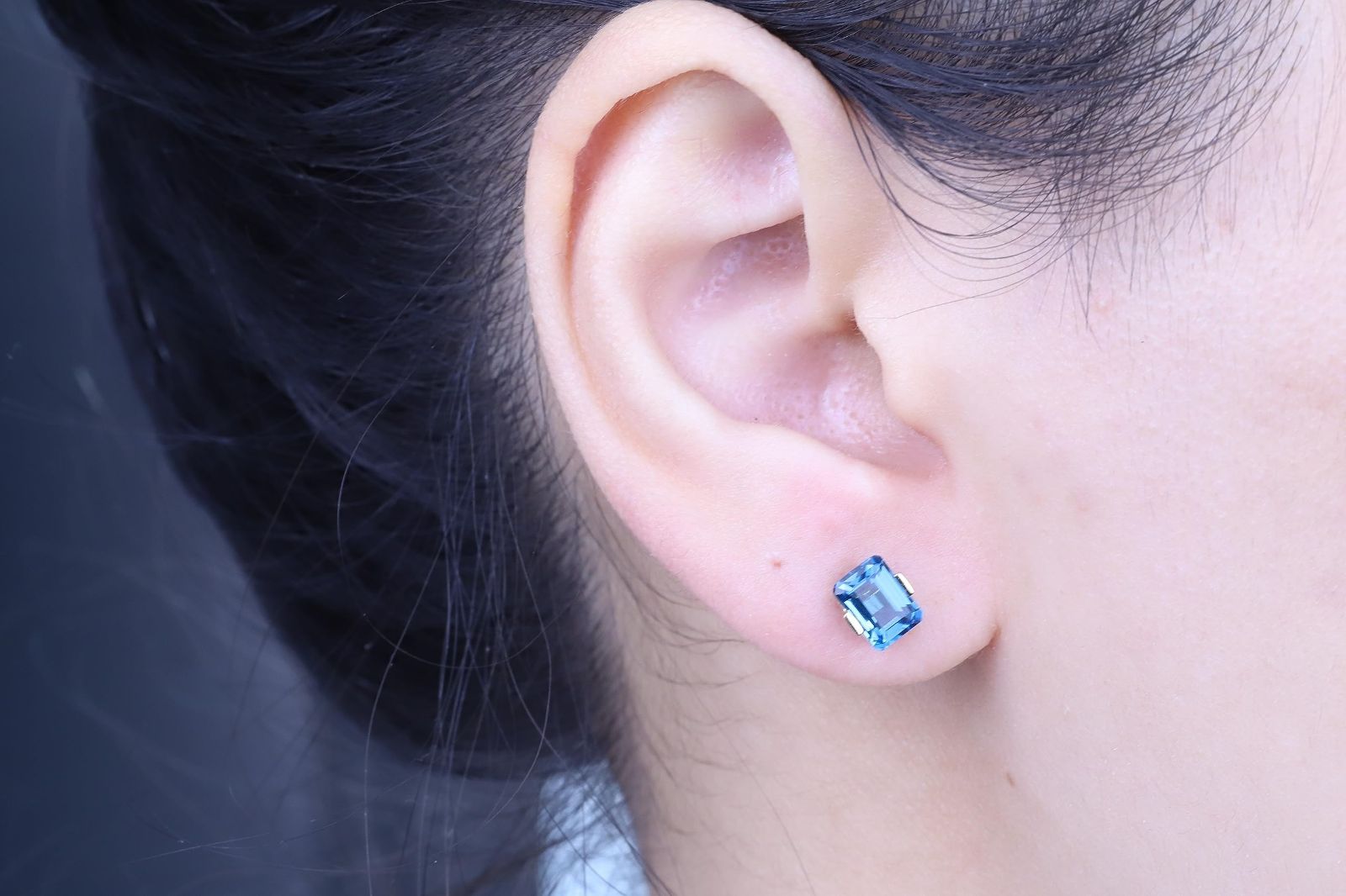 数量 Grace - 10 kイエローゴールド のロンドンブルートパーズイヤリングの女性のための 倫理的 で 有機的に調達した エメラルド 形状のロンドンブルートパーズの手作りのジュエリー Gin