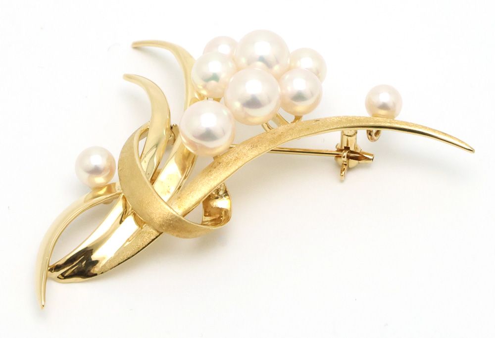 元住吉 タサキ K 18 パール ブローチ パール4.5-7 mm