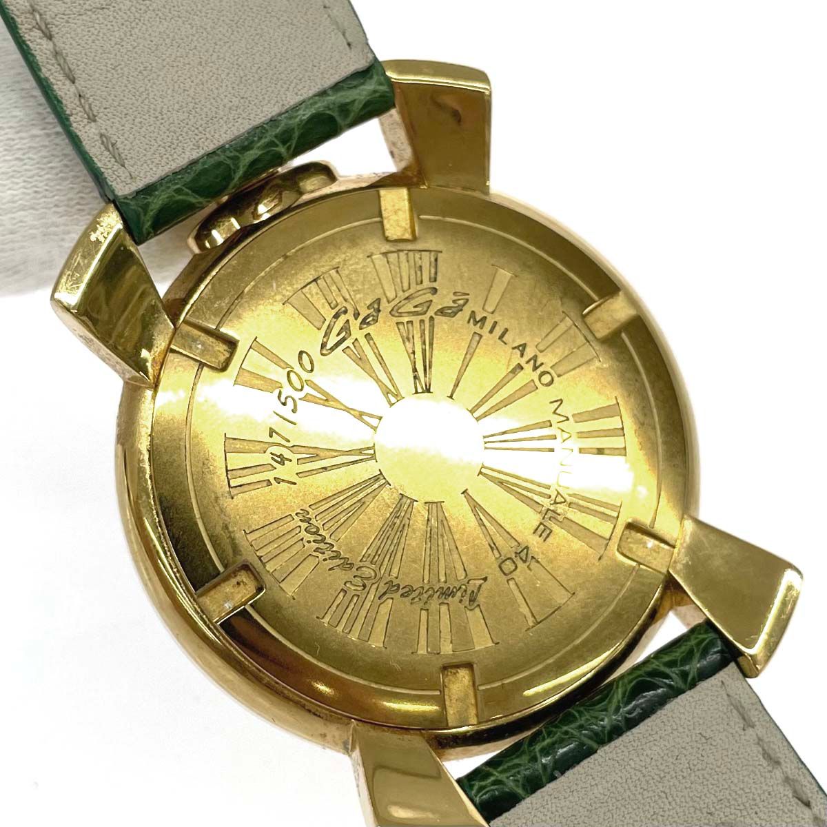 GAGA MILANO ガガミラノ マヌアーレ40 腕時計 500本 SS×レザー ゴールド グリーン ユニセックス