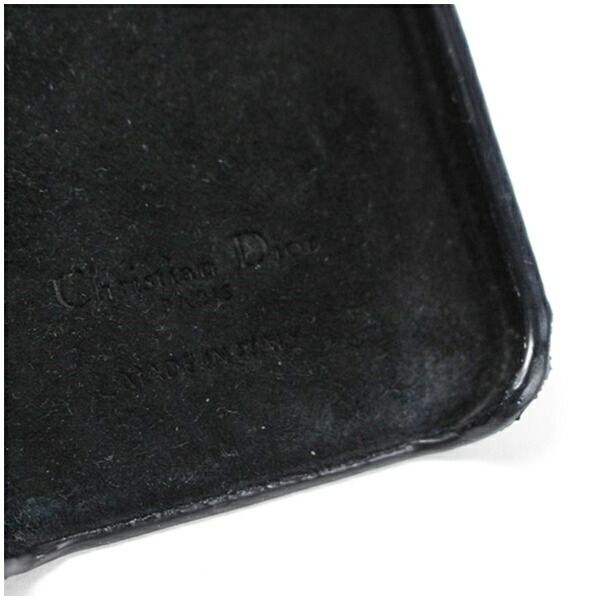クリスチャンディオール iPhone スマートフォンケース ブラック レザー 新品 ABランク Christian Dior| レディース 女性 ブランド スマホケース モバイルアクセサリー エナメル 箱付き 【送料無料】