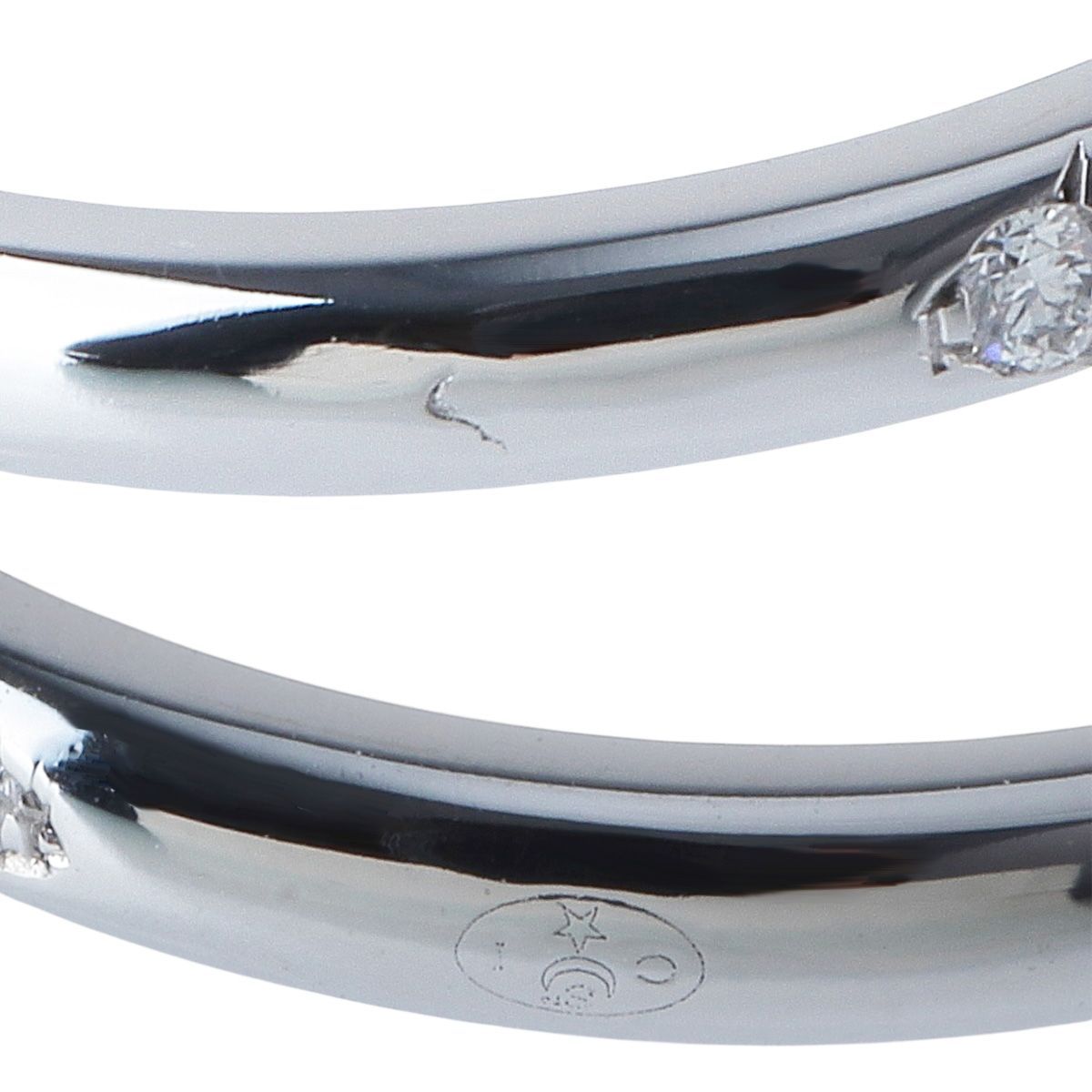 ※リング外側のキズのような凹みはホールマークになり、キズではございませんが磨き作業により片方が薄くなっています。