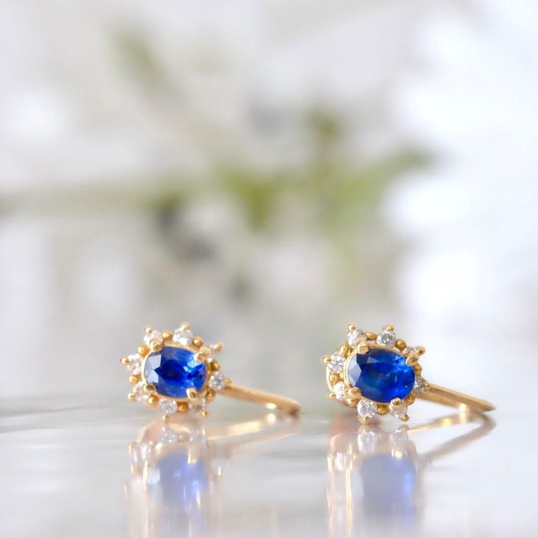 イヤリング k 18 サファイア 0.38 ダイヤ 0.08 2 g
