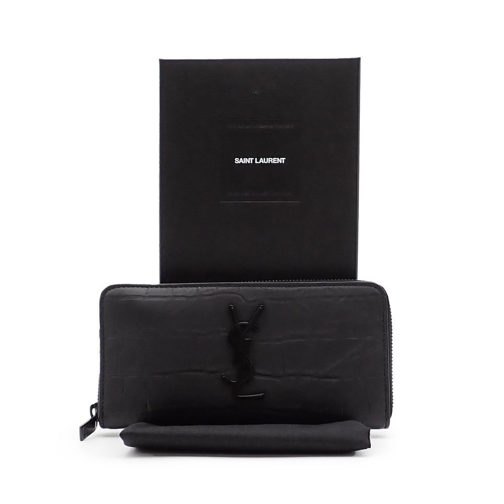 サンローラン 長財布 ラウンドファスナー クロコ 型押し エンボス ブラック 617415