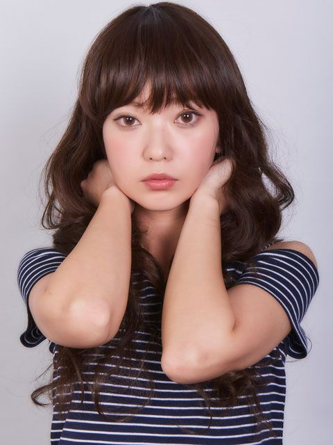 ★小顔バング、ラブでカジュアルな質感のロングウェーブスタル。全体はおさまりのよいレイヤーベースで動き、軽さを出して。