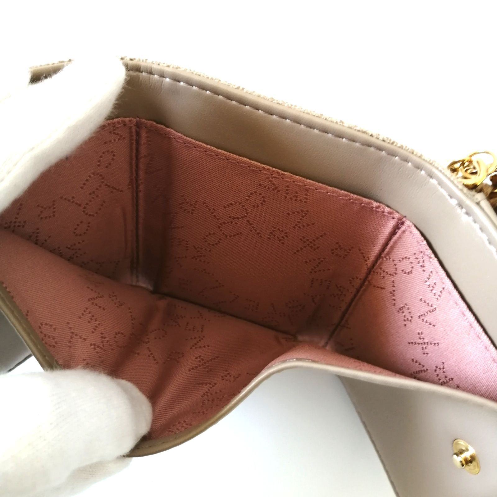 美品 ステラマッカートニー トリフォールド ファラベラ スモールウォレット 三つ折り財布 ベージュ 【190】