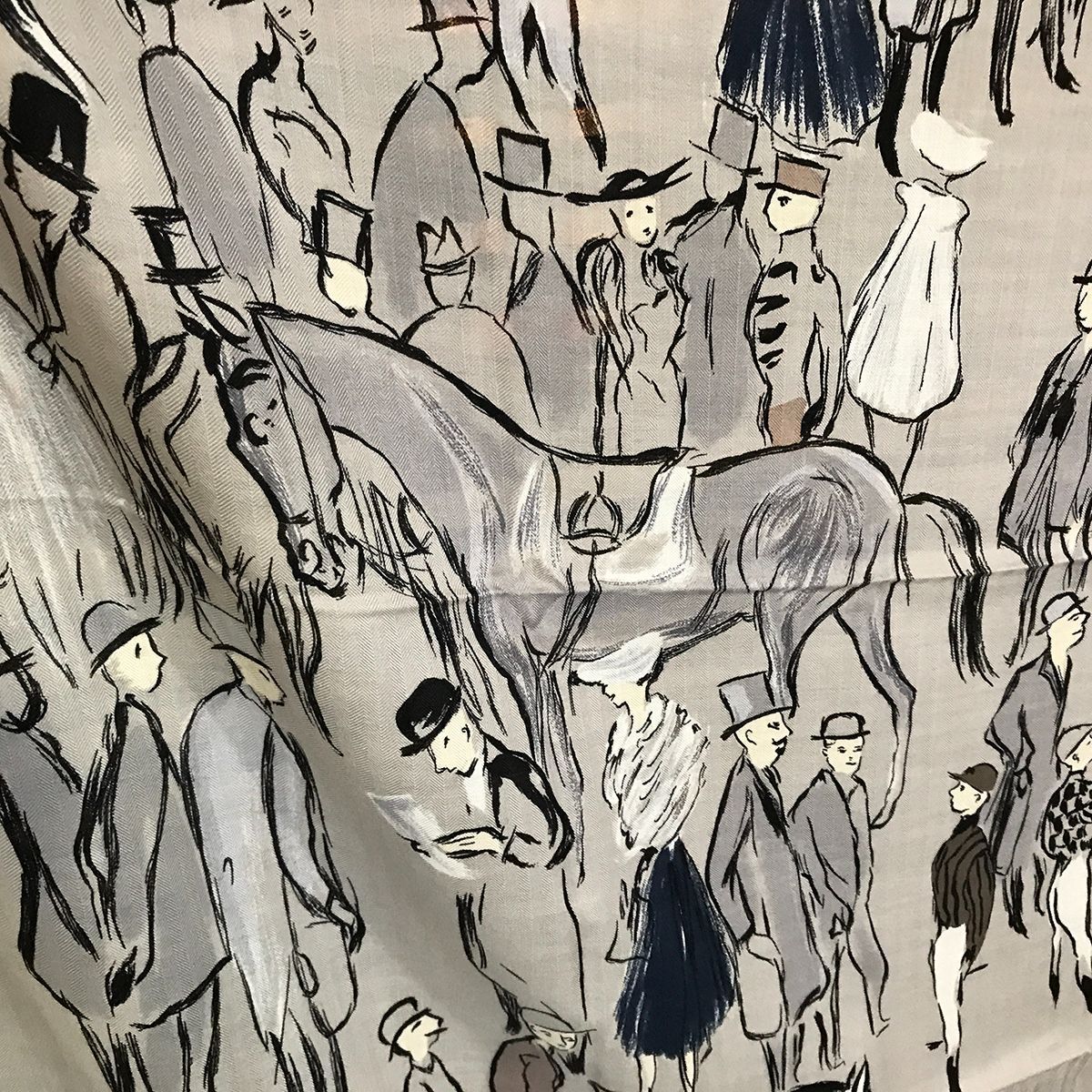 エルメス カレジェアン140 パドック カシシル 大判ショール グリエタン ブルーマリン ナークル 14408