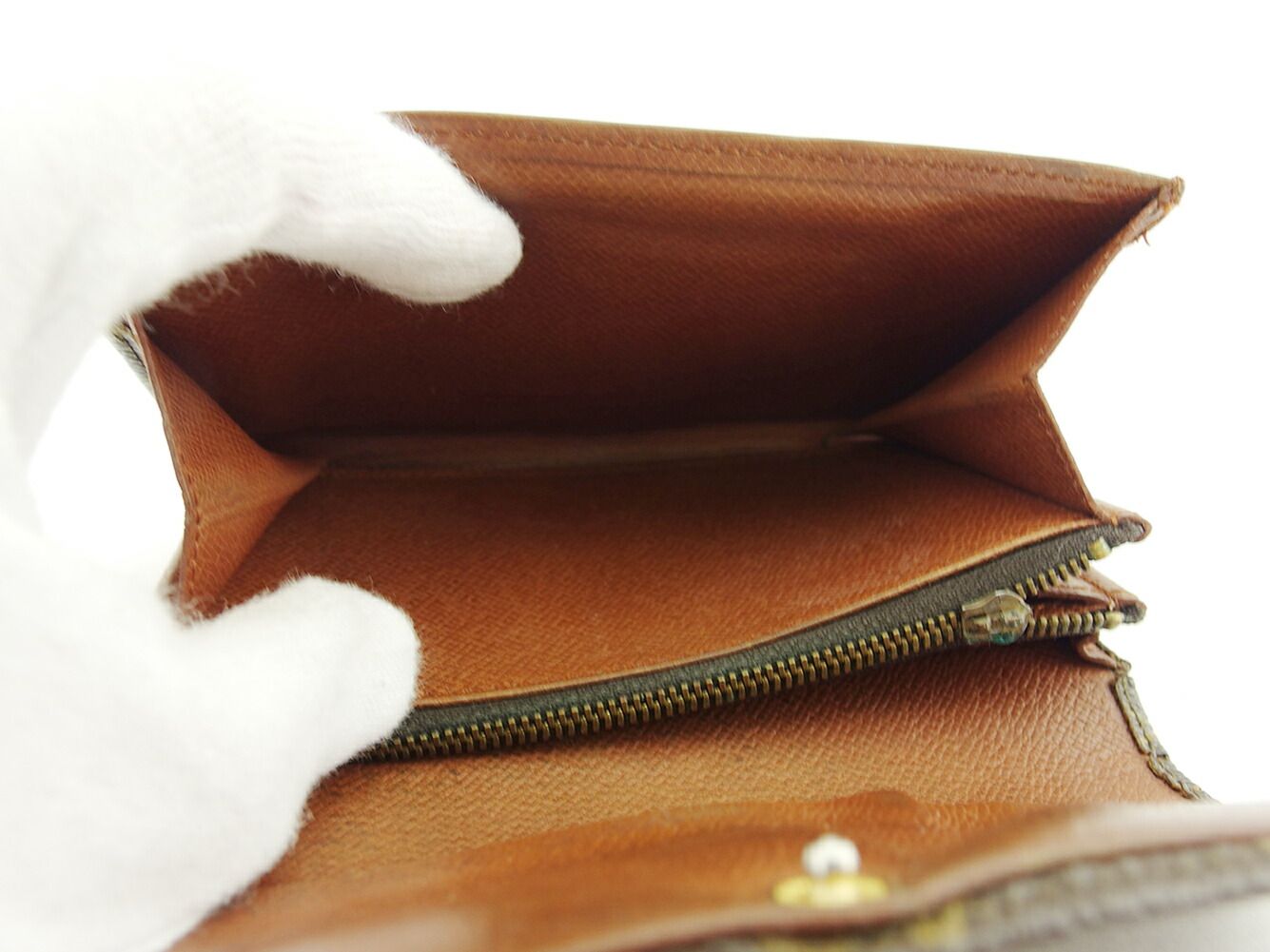 ルイ ヴィトン LOUIS VUITTON 二つ折り財布 モノグラム ポルトモネジップ ブラウン ベージュ レディース