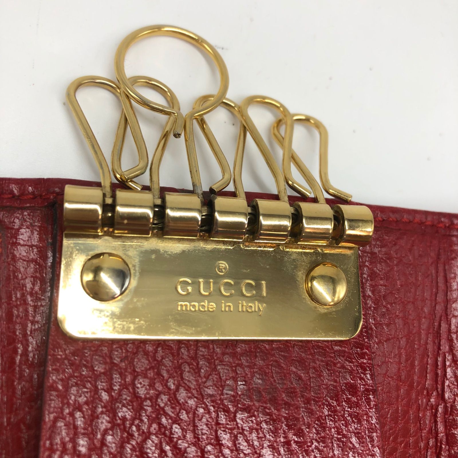 グッチ 6連キーケース GGマーモント 赤 革 鍵フック FX 552