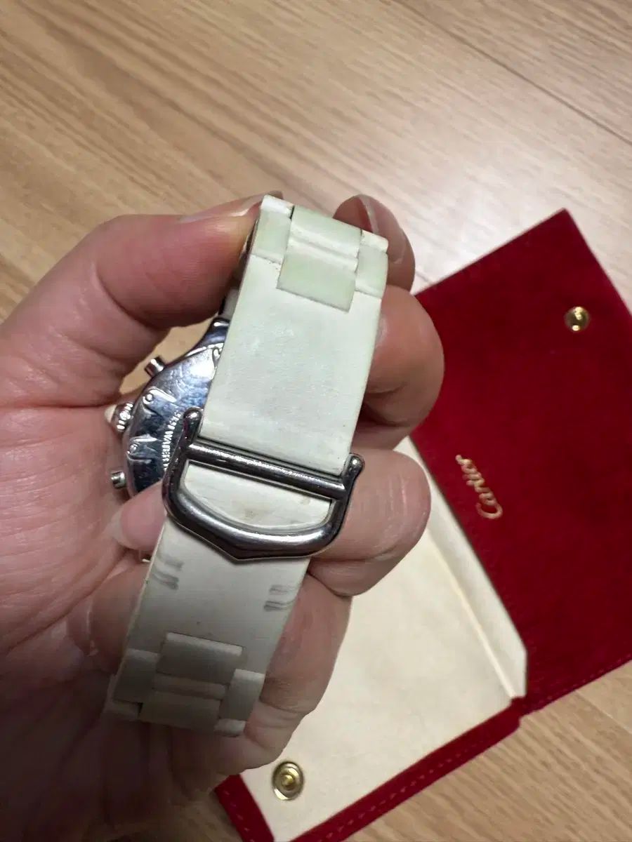 カルティエ マスト 21 クロノスカフ レディース 時計です。古いヴィンテージ商品で、現在しばらく使用していないため止まっている状態です。修理または電池交換が必要ですので、修理して使用される方のみ購入してください。返品はできません。修理費を考慮して安価で出品します。銀色メタルと白色ラバー バンドで、バンドに色褪せがあります。保証書などはありませんが、本物です。ファブリック 時計 収納ボックスも一緒にお付けします。コメントがなければ、そのまま安全決済してください!