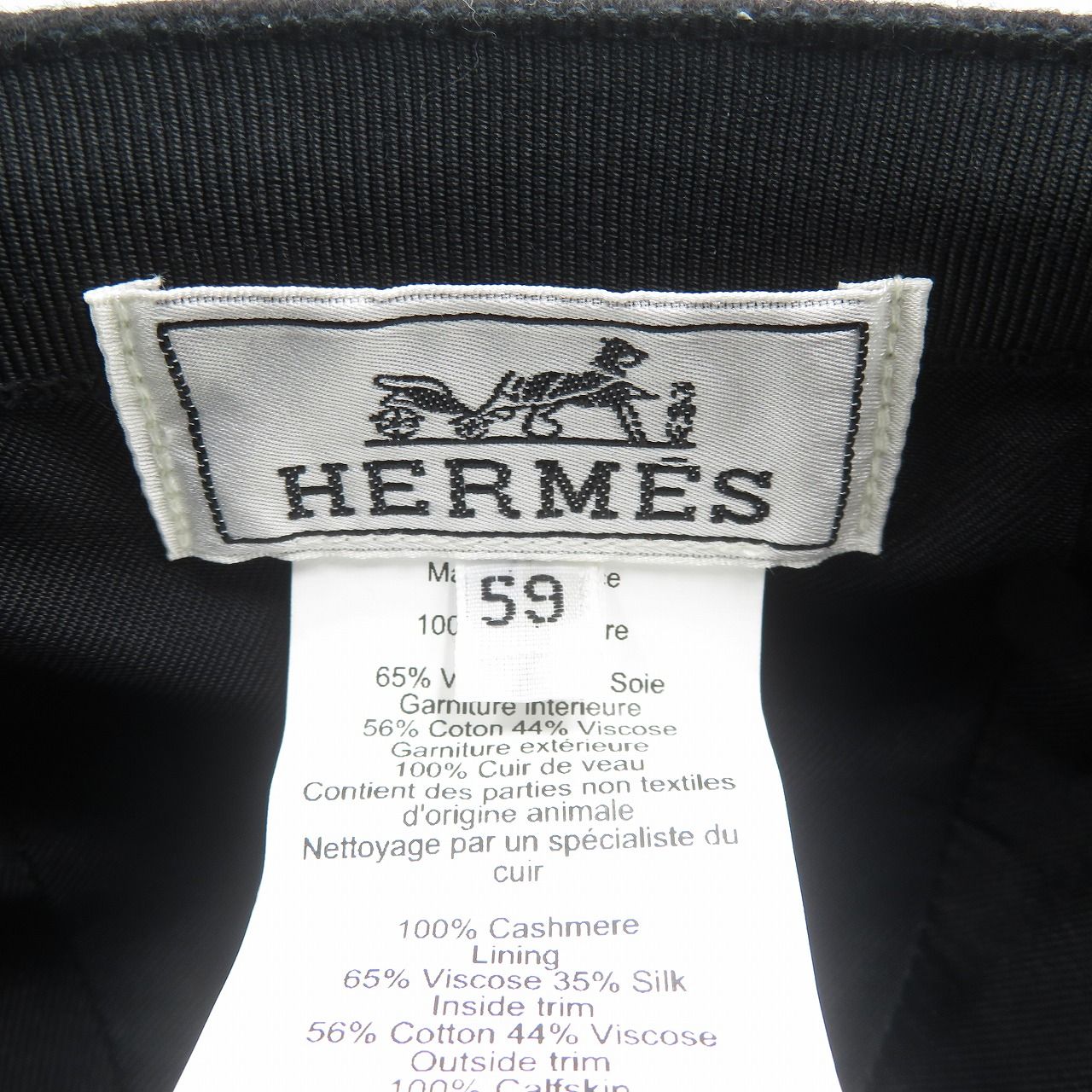 エルメス セレナ エプロンドール 59 カシミヤ レザー シルバー金具 ブラック キャップ 帽子 0352 HERMES